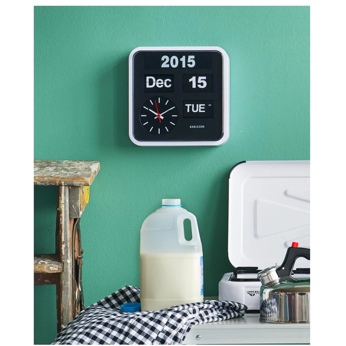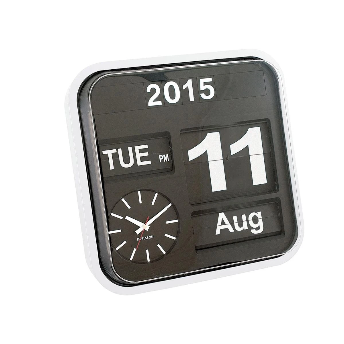 Met deze Karlsson Flip wandklok weet jij in één oogopslag de tijd, welke dag van de week het is én de datum. Handig voor op kantoor, in de woonkamer of in de keuken. De zwarte display en de afgeronde vorm geven deze klok een stoere retro look.