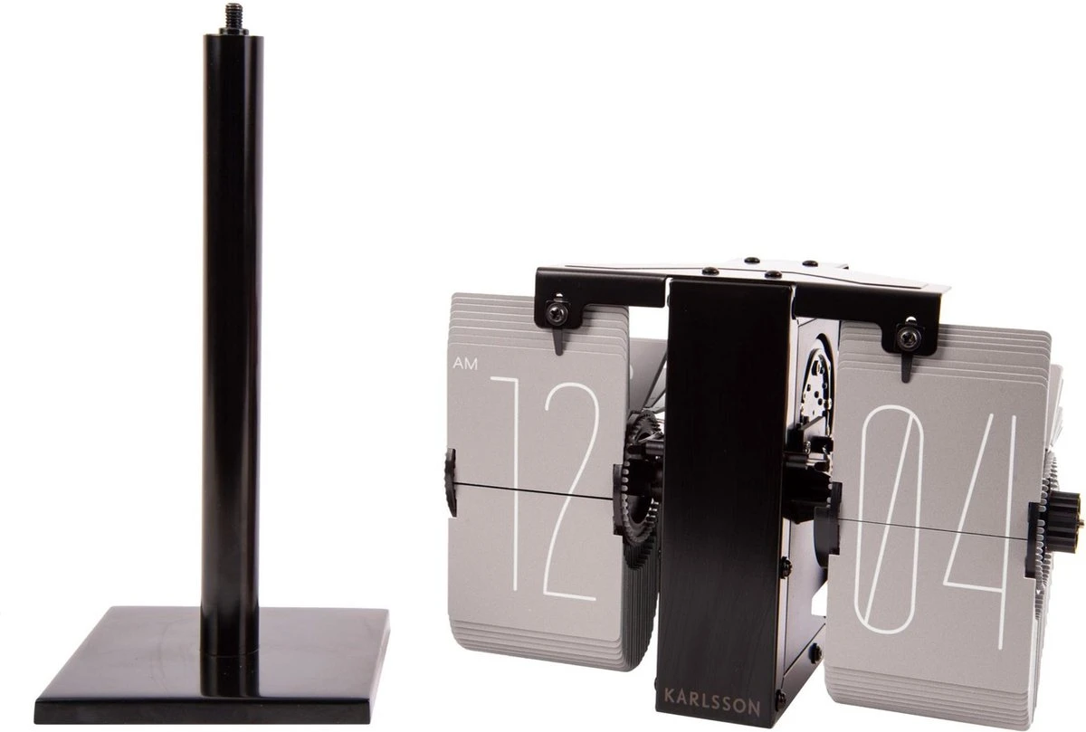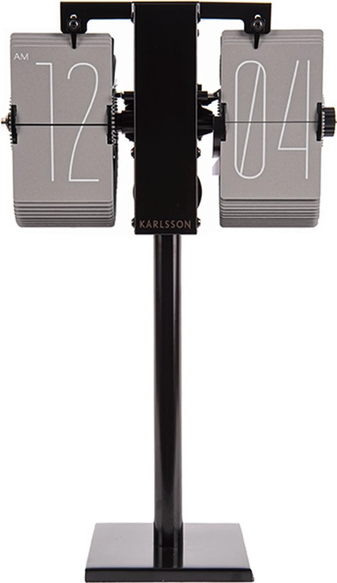 Karlsson Flipklok No Case Mini – Warm Grijs – Zwarte Standaard – 20,6×7,5cm