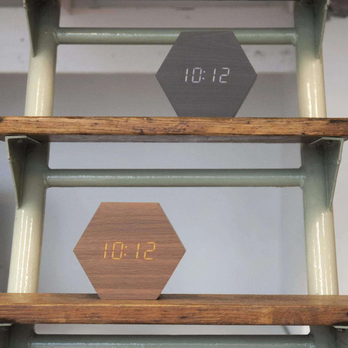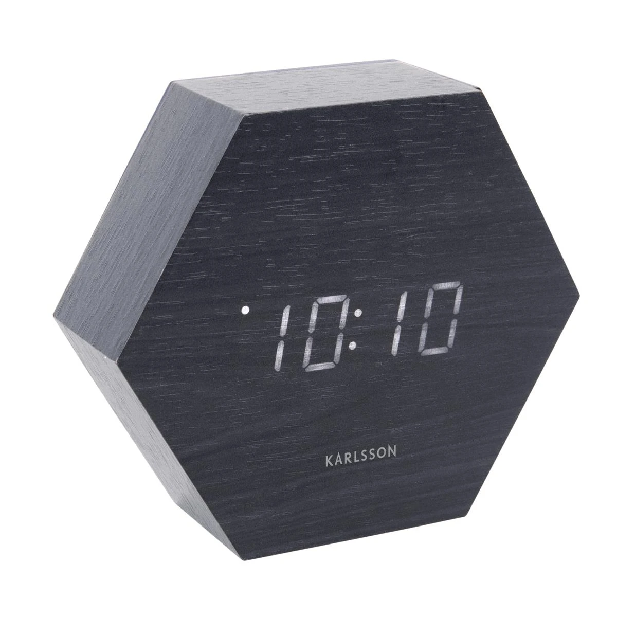 Met dit hippe Hexagon wekkertje van Karlsson wordt opstaan in de ochtend een stuk leuker. De digitale LED cijfers schijnen mooi door het houten frontje, waardoor je de tijd heel makkelijk afleest. Mag deze leuke achthoek jou voortaan wakker maken?