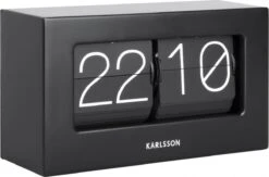 Een nieuw ontwerp van de bestseller klok van Karlsson: Boxed Flip. In mat zwart krijgt deze bekende tafelklok van Karlsson een ultramodern jasje. Karlsson klok Boxed Flip werkt met kaartjes die doordraaien en op die manier de tijd laten zien. Vandaar de naam Flip. Van werkruimte tot slaapkamer en van de keuken tot de gang; tafelklok Boxed Flip van Karlsson kan in elke kamer een plekje vinden staand op een tafeltje of kast! Karlsson klokken en wekkers zijn wereldwijd favoriet.