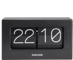 Een nieuw ontwerp van de bestseller klok van Karlsson: Boxed Flip. In mat zwart krijgt deze bekende tafelklok van Karlsson een ultramodern jasje. Karlsson klok Boxed Flip werkt met kaartjes die doordraaien en op die manier de tijd laten zien. Vandaar de naam Flip. Van werkruimte tot slaapkamer en van de keuken tot de gang; tafelklok Boxed Flip van Karlsson kan in elke kamer een plekje vinden staand op een tafeltje of kast! Karlsson klokken en wekkers zijn wereldwijd favoriet.