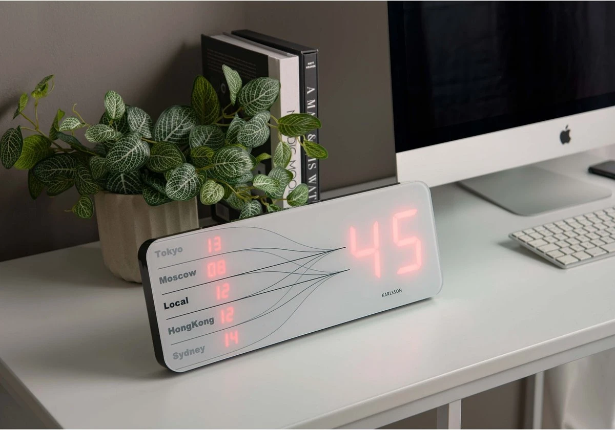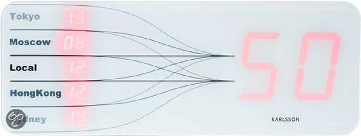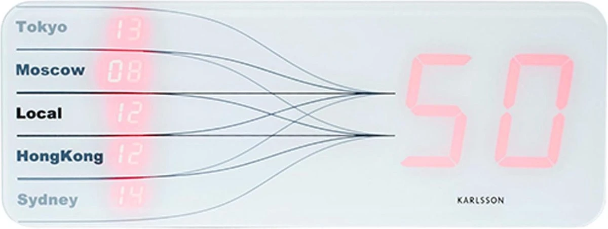 Karlsson Wall Clock Five Cities LED Case – Klok – Kunststof – 14×15 Cm – Wit