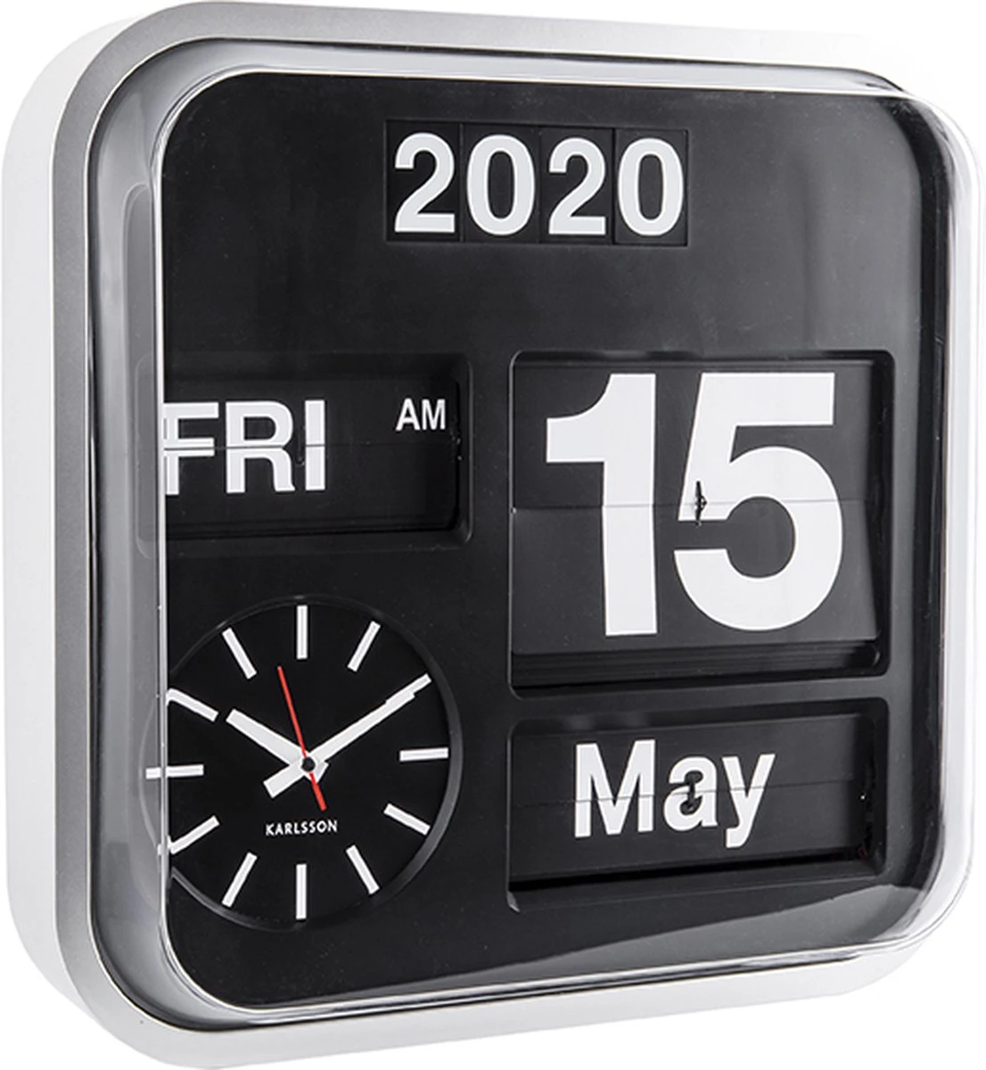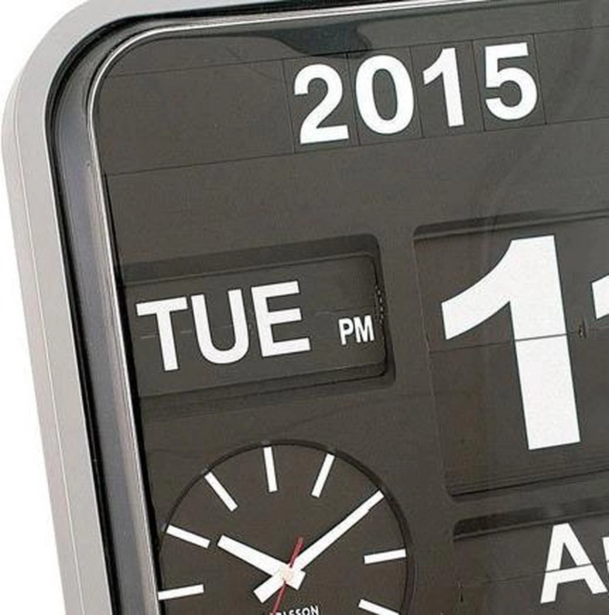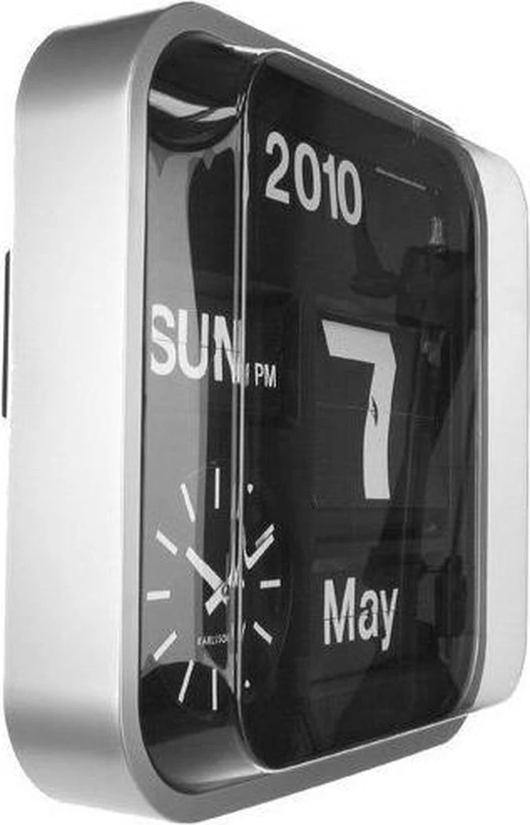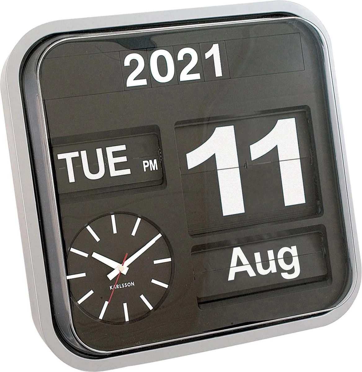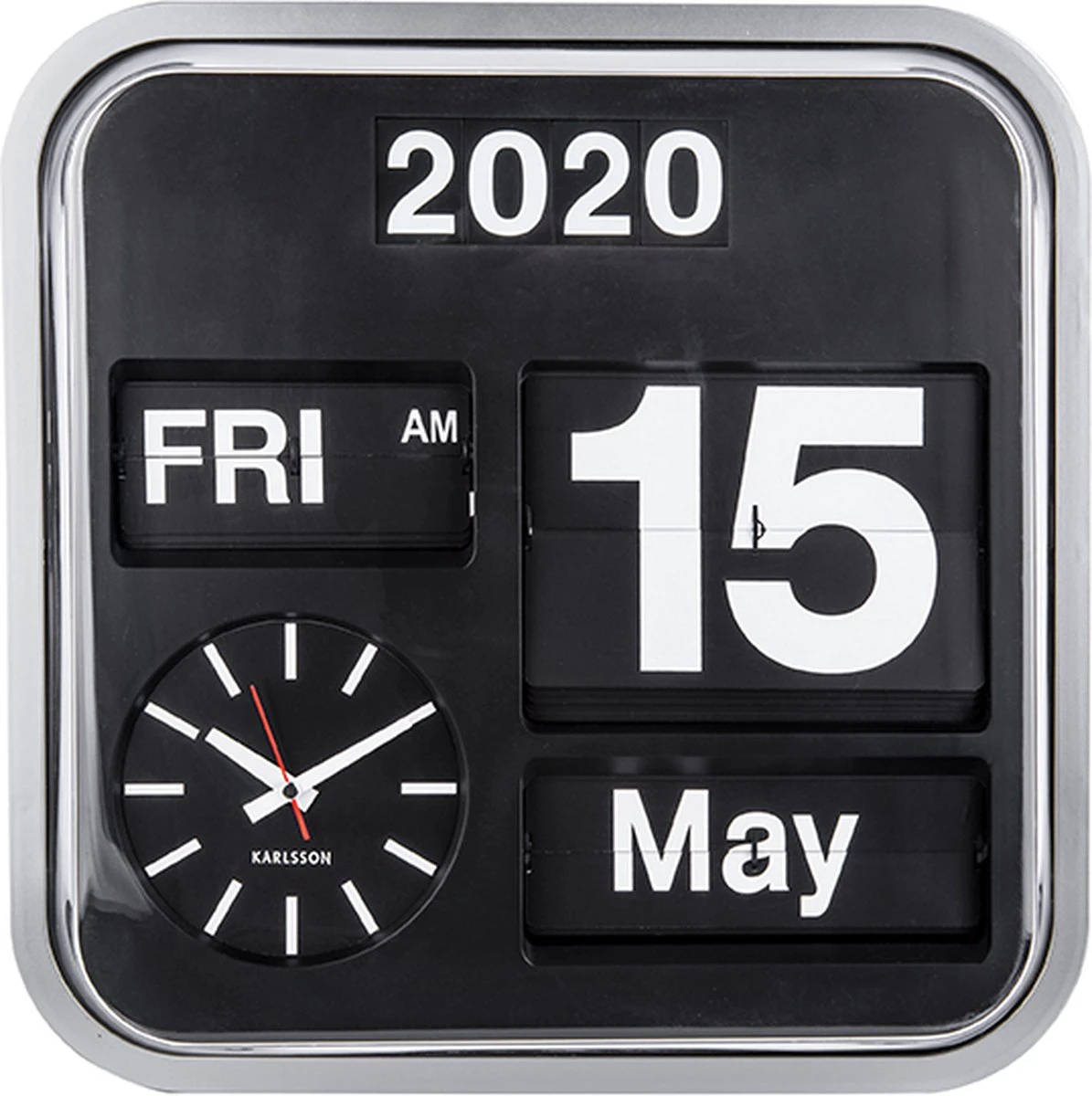Een echte klassieker van Karlsson. Wandklok Big Flip is een praktisch accessoire, maar ook een stijlvol item aan de wand. Big Flip van Karlsson laat niet alleen de tijd zien, ook de dag en datum kunnen worden afgelezen. Zo heb je met één blik een compleet overzicht. Deze Karlsson klok is zeer bruikbaar in zakelijke omgevingen – op kantoor of in je home office -, maar ook in de keuken of woonkamer komt wandklok Big Flip tot zijn recht. De wandklok maakt indruk met een retro look die doet denken aan de jaren ’50. De eenvoudige zilveren behuizing met zwarte wijzerplaat maakt hem tot een modern decoratief item aan de wand. Always on time! Karlsson klokken en wekkers zijn wereldwijd favoriet.