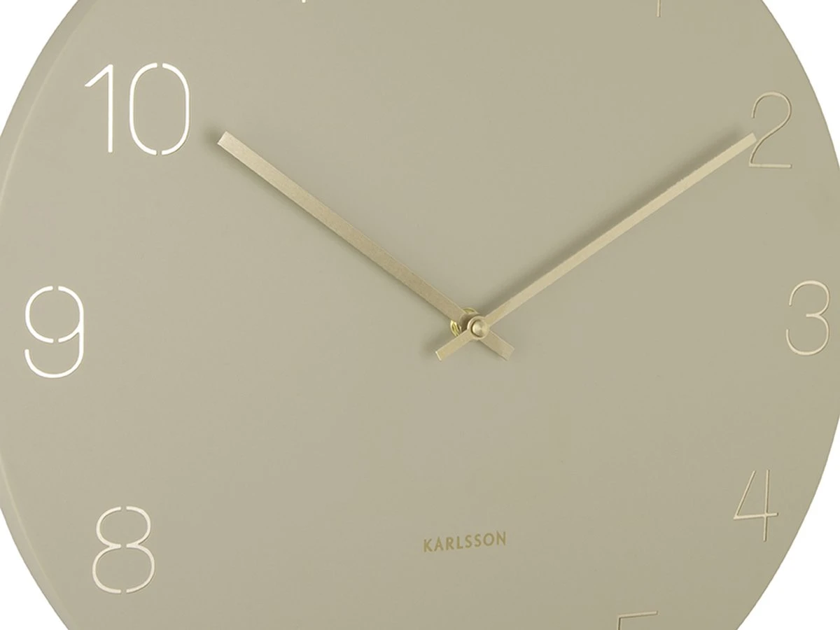 Karlsson Wandklok Charm – Gegraveerde Cijfers – Olijfgroen – Ø40cm