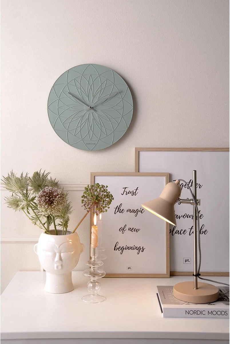 Are you on trend? Met wandklok Fairytale van Karlsson zeker! Wandklok Fairytale doet zijn naam eer aan. Het sprookjesachtige ontwerp heeft een bijzonder Mandala patroon op de wijzerplaat. Deze prachtige, symmetrische tekening is in de wijzerplaat geperst en komt een beetje naar boven uit de wijzerplaat, waardoor een mooie diepte ontstaat. Fairytale is ontworpen door Armando Breeveld, is beschikbaar in 6 frisse kleuren en elk exemplaar heeft elegante slanke wijzers in zilver.