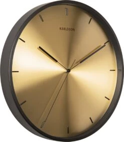Karlsson Wandklok – Finesse – Gouden Wijzerplaat – Zwarte Behuizing