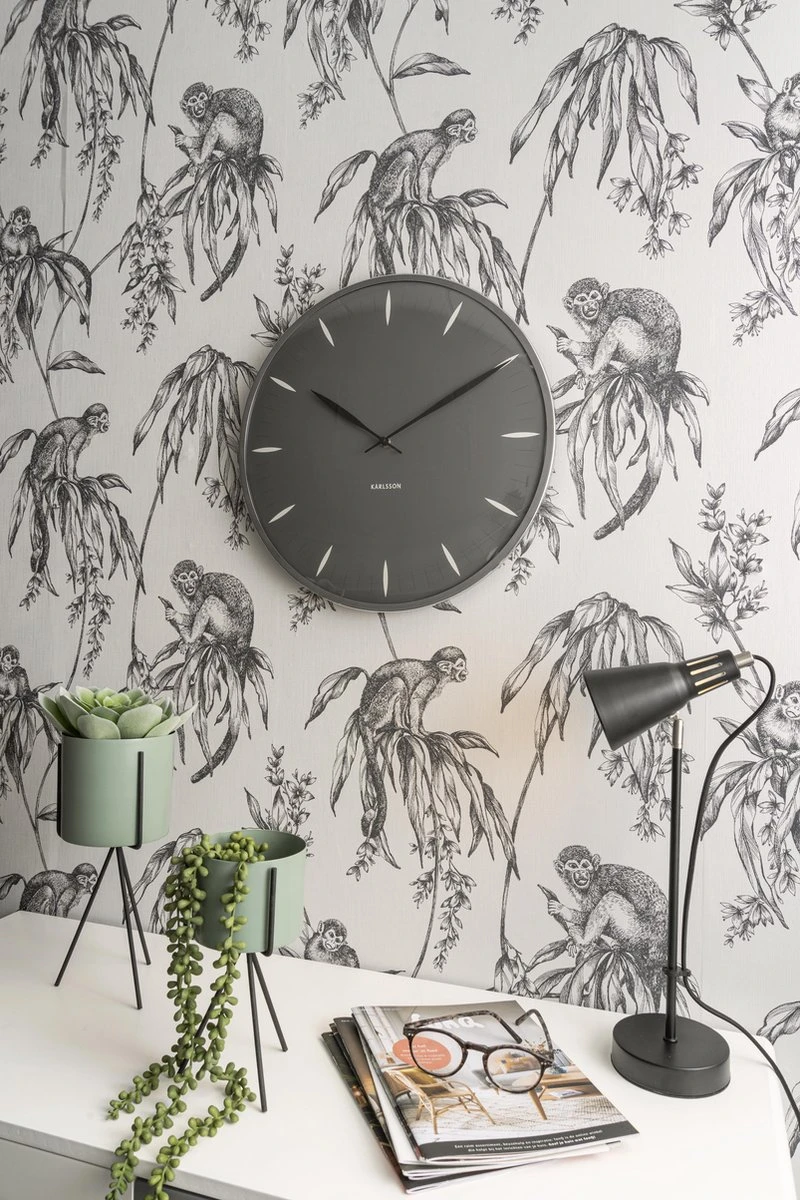 Karlsson Wandklok Leaf – Donkergrijs, Bol Glas – Ø40cm