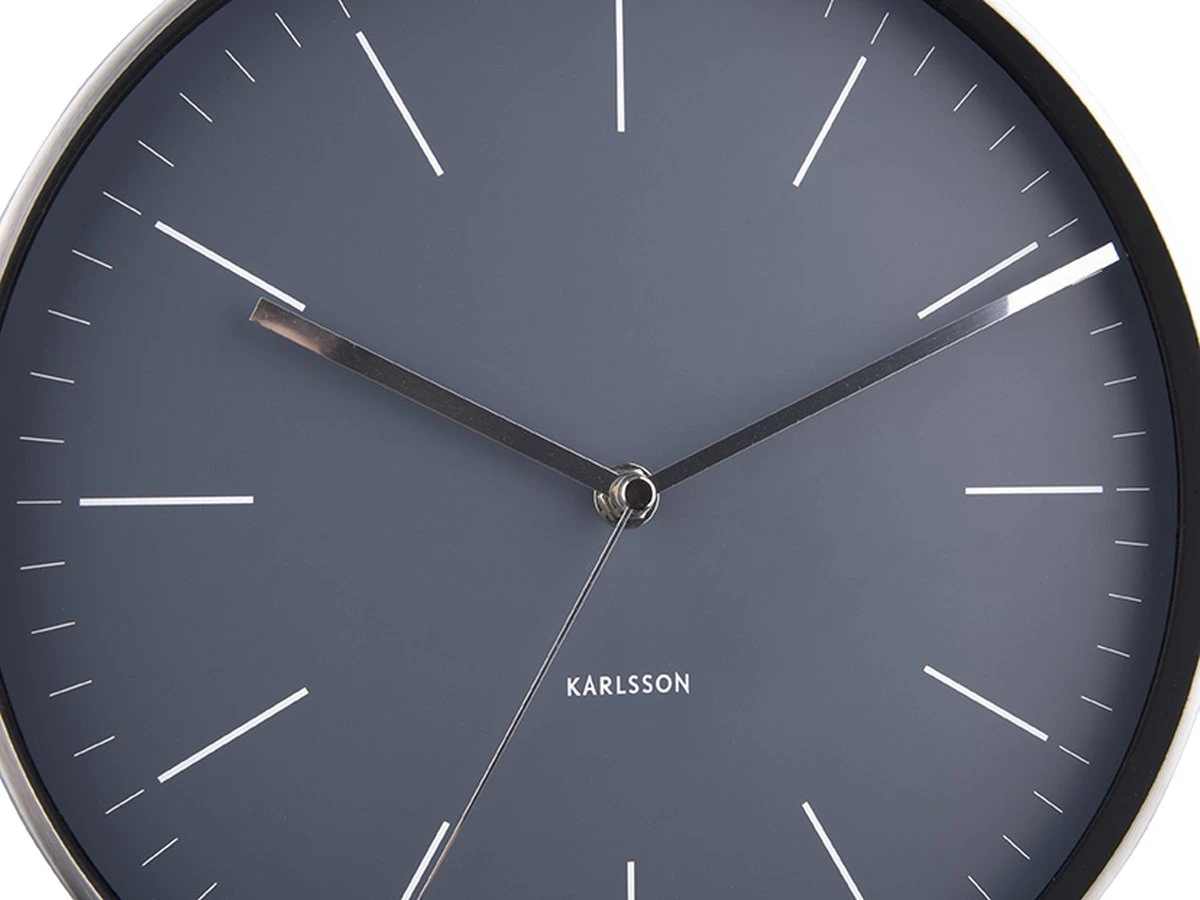 Karlsson Wandklok Minimal – Nachtblauw, Nikkel Behuizing – Ø27,5cm
