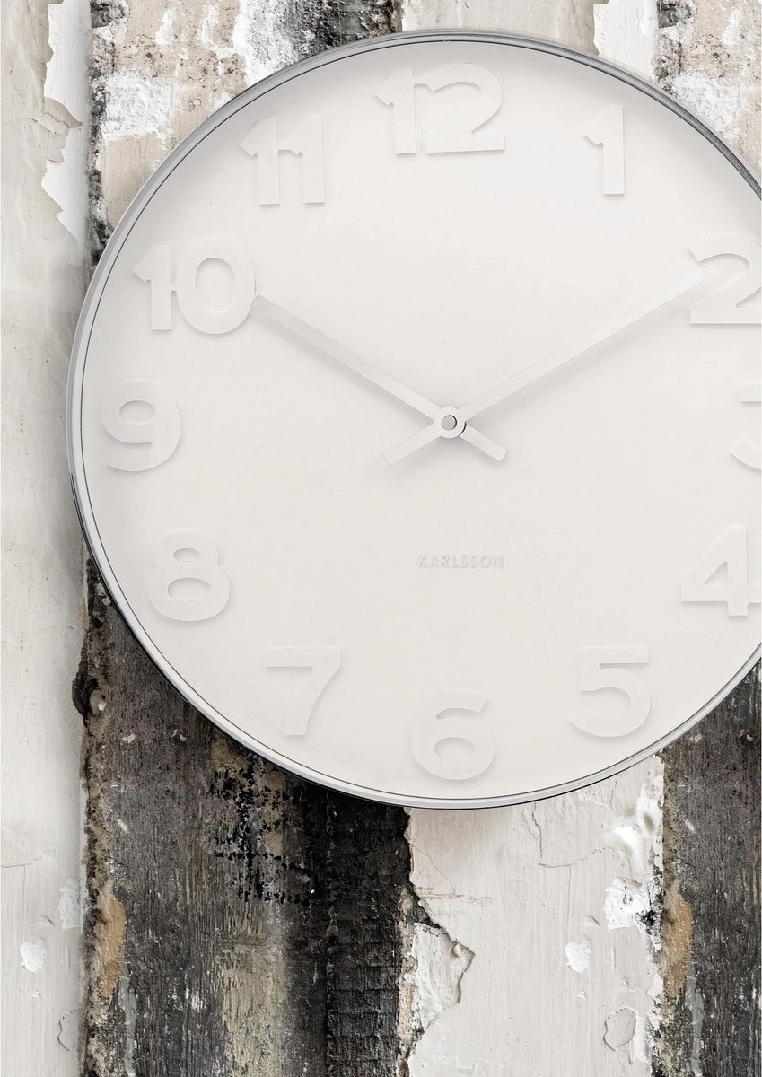 Karlsson Wandklok Mr. White Numbers – Staal Gepolijst – Ø51cm