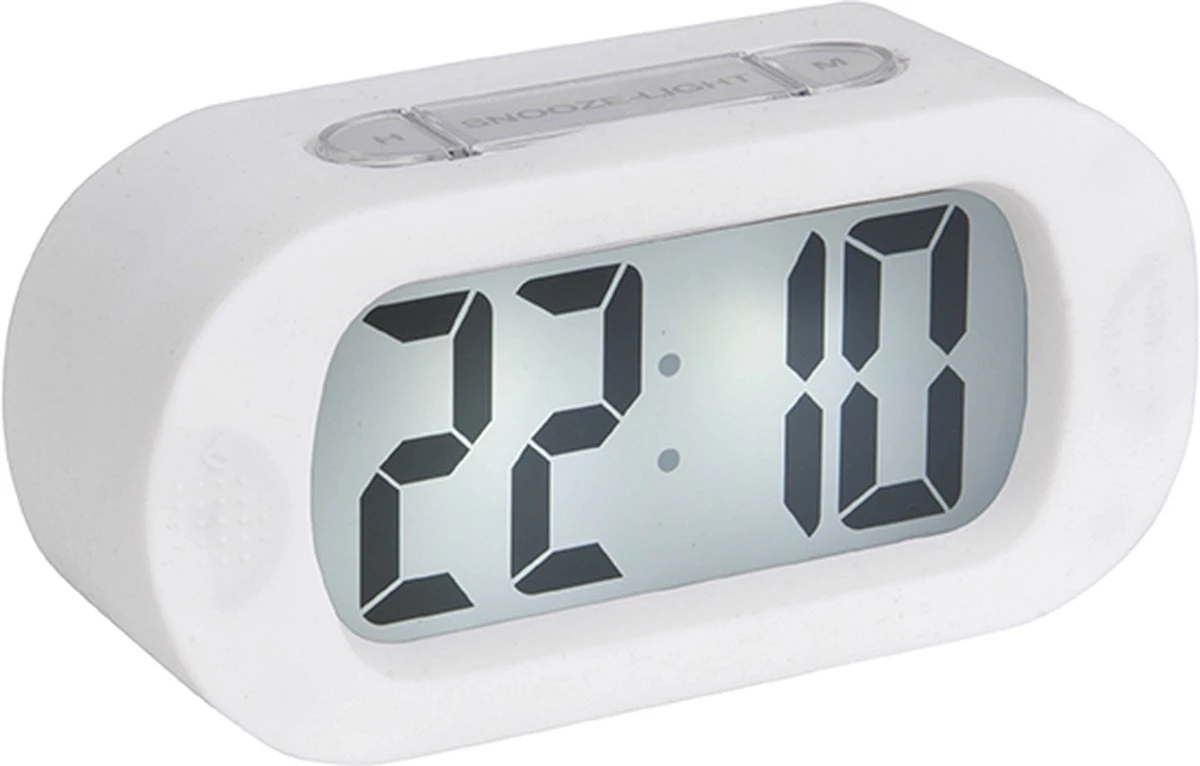 Wat een plaatje! Deze moderne digitale wekker van Karlsson maakt indruk met een moderne, basic look en een speelse rubberen coating. Van het afgeronde, grote scherm van moderne wekker Coy lees je in een seconde de tijd af, wel zo fijn als je in alle vroegte wakker wordt. Het witte LED licht is prettig voor je ogen én Gummy beschikt ook nog over een snooze functie. Wat wil je nog meer? Beschikbaar in twee hippe kleuren! Karlsson klokken en wekkers zijn wereldwijd favoriet.